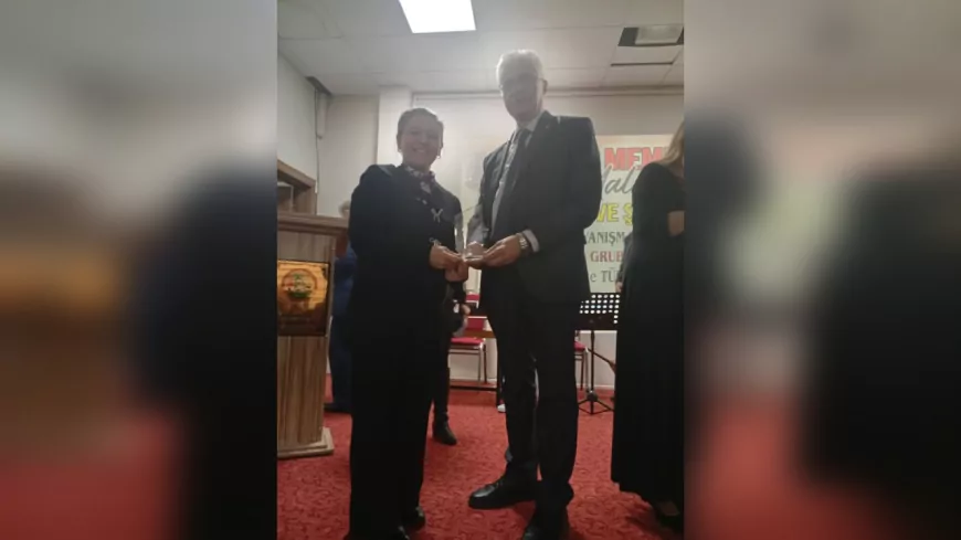 Köprübaşı Edebiyat Dergisi Genel Yayın Yönetmeni Rukiye Özdemir Koca ve Onbir Onbir Bilecikliler Grubu Başkanı Hikmet Güven, Belediye Başkanı Haydar Çorum’a plaket takdim etti.